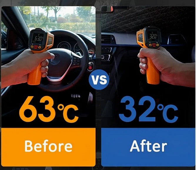 Efekt termiczny – redukuje nagrzewanie wnętrza, chroni deskę rozdzielczą i tapicerkę
